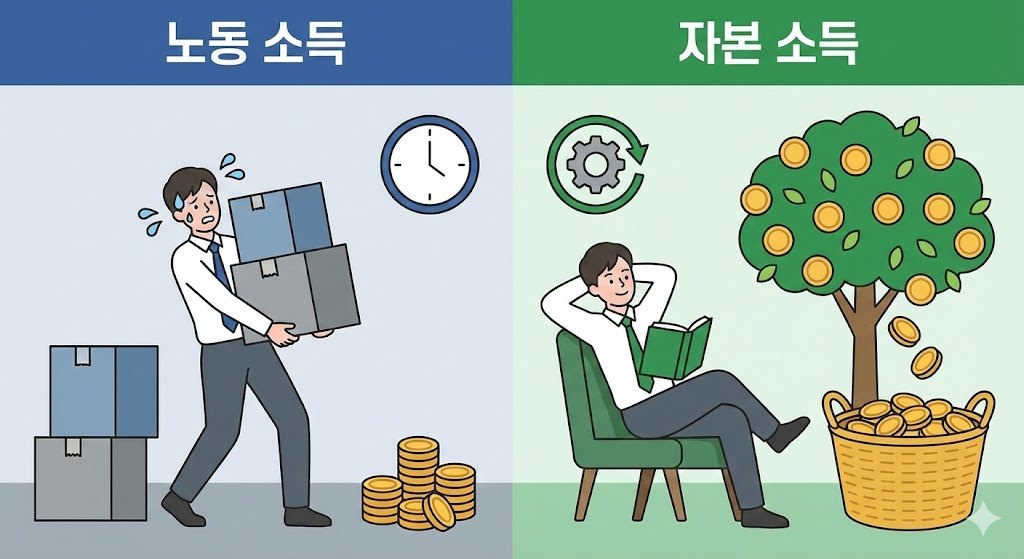 ▲ Alt 태그: 내가 일해서 버는 노동 소득과 돈이 돈을 버는 자본 소득의 차이